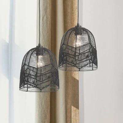 Bring relaxed modern style to a variety of spaces in your home with this 10″ Zola Black Rattan Cloche Pendant Light. Featuring a black canopy, cord, fixture and shade, this chic pendant light combines the boho, beachy vibes of open-weave rattan with a modern sensibility thanks to the clean monochrome look. Compatible with LED, incandescent and CFL bulbs, it’s a great choice for updating spaces from your mid-century modern living room to your contemporary open-concept kitchen. The adjustable-height design lets you find the perfect hanging height whether you’re placing this cloche pendant light at a short distance from your ceiling or positioning for a dramatic drop above your dining table or kitchen island.