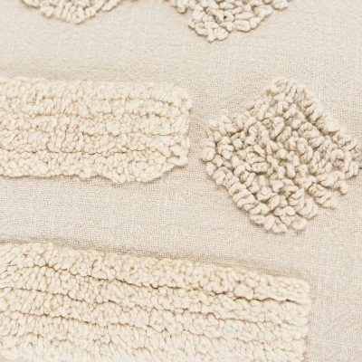 This knife edged pillow is a beautiful example of texture and pattern creating a “wow” in a very understated format and color. Asymetrical looped embroidery and sheered tufting create geometric shapes that give this neutral the pop of beautiful contemporary pattern and design. The back features a solid coordinating cotton back with a hidden zipper closure for ease of fill.