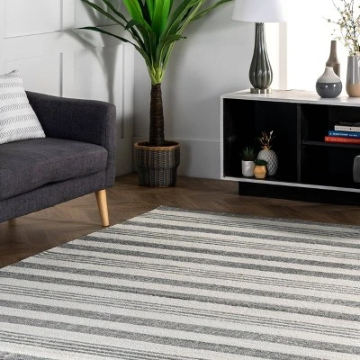 Bring lush, sophisticated style to your decor with this sumptuous rug, machine woven from durable and soft polypropylene yarns, the beautiful rug features an intriguing stripe pattern that alternates between large stripes and thinner triple stripes. Cool gray and ivory colors and a shed-resistant construction enhance the minimalist appeal of this soft and long-lasting rug.