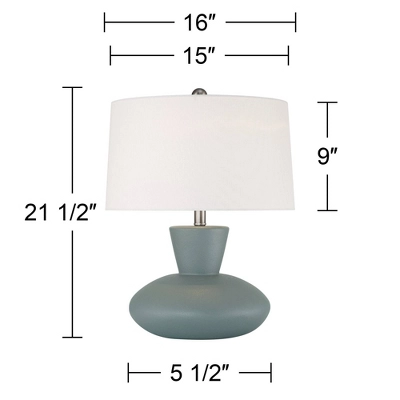 Inspired by low and linear Mid-Century design, this ceramic table lamp is ready to shine in contemporary and modern room decor. The ceramic base is in a gray glaze that’s a cool and soothing color tone. Up top is a tapered white fabric lamp shade.