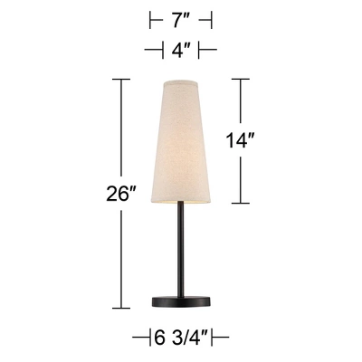 Bronze and linen, together, can create beautiful home accents with a decidedly modern look. These slender accent lamps feature an espresso bronze finish base, a round stand, and clean off-white linen cone shades. Ideal for any room that needs a sleek, contemporary look.