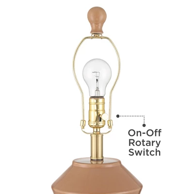 Update a living room or bedroom space with this modern table lamp from the 360 Lighting brand. The ceramic base has a stacked geometric profile in a red clay glaze. Up top is a white fabric drum shade with a decorative ceramic finial. A 3-way socket allows you to use 3-way bulbs and provides easy lighting control.