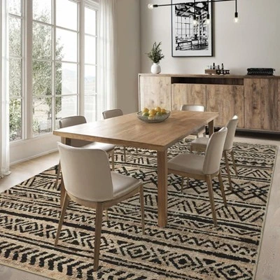 1.Modern Boho Geometric Design Featuring an artistic blend of triangles, diamonds and clean lines in soothing neutral tones, this rug adds contemporary boho flair to any space. The minimalist pattern creates visual interest while complementing modern, Scandinavian and eclectic decor styles. 2.Ultra-Convenient Machine Washable Designed for real-life messes, this rug is completely machine washable without fading or shrinking. Simply toss in cold water (gentle cycle) and air dry for effortless refreshment – perfect for homes with kids, pets or high traffic. 3.Secure Non-Slip Performance The advanced TPR rubber backing with textured surface provides superior grip on all floor types. The dense polyester construction prevents shifting or bunching, ensuring safety in active households. 4.Thin Yet Durable Construction At just 0.3″ thick, this space-saving rug slides easily under furniture while the reinforced edges prevent curling. The high-density weave resists shedding and maintains its geometric pattern beautifully over time. 5.Versatile Multi-Space Solution From living rooms to kitchens, this 5×7 rug adapts seamlessly to any area. The neutral color palette blends effortlessly with existing decor while the durable materials stand up to daily wear.