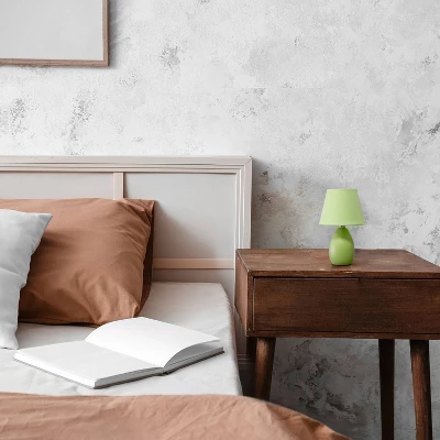 A petite table lamp made primarily of ceramic with its oblong base shape sits beneath a matching colored tapered fabric shade for an overall effortlessly styled lamp suited for both your décor and lighting needs. A number of color options are available in this style, to compliment your decor just right.