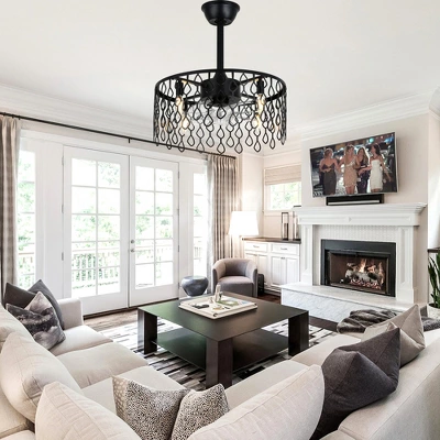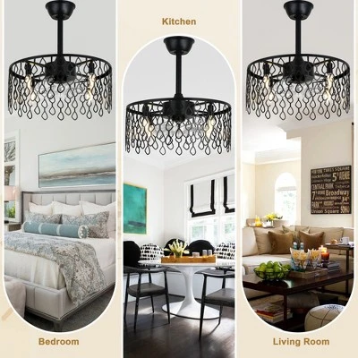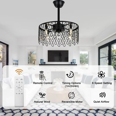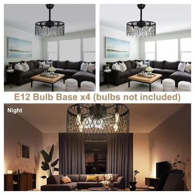 Introducing the Bella Depot 19″ black caged ceiling fan light, where elegance meets functionality. This stylish fan features a sleek, minimalist design with a matte black metal frame that adds a touch of sophistication to any space. Equipped with 8 durable ABS blades, it ensures optimal airflow while operating quietly at just 50 dB¡ªeven on its highest setting! With 6 speed options and reversible rotation, it¡¯s perfect for year-round comfort. Customize your lighting with 4 E12 bulb sockets (bulbs not included) and enjoy the convenience of a built-in timer. Installation is a breeze with included 4″ and 8″ downrods, making it a versatile choice for any decor. Elevate your home with this chic and practical addition!
