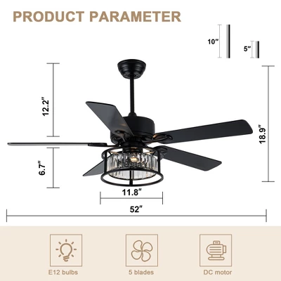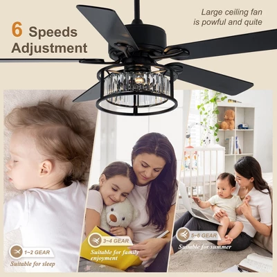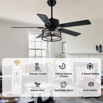 Transform any room into a stylish oasis with our stunning 52″ Ceiling Fan featuring an elegant crystal pendant light shade. Its sleek and modern design effortlessly complements a variety of decor styles, making it perfect for living rooms, bedrooms, or dining areas. Enjoy customizable comfort with six adjustable speed settings and a reversible motor, allowing you to enjoy a refreshing breeze in the summer and circulate warm air in the winter. The fan comes equipped with three light fixtures (bulbs not included) to illuminate your space beautifully. Plus, installation is a breeze, and we back our product with a one-year warranty for your peace of mind. Upgrade your home today and experience the perfect blend of functionality and elegance!