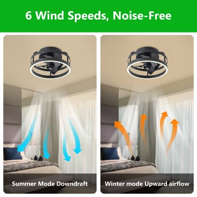 - Modern 2-in-1 Design: Sleek, low-profile 12in. round caged design ceiling fan with LED flush mount light for spaces with low ceilings, ensuring a modern and unobtrusive look.