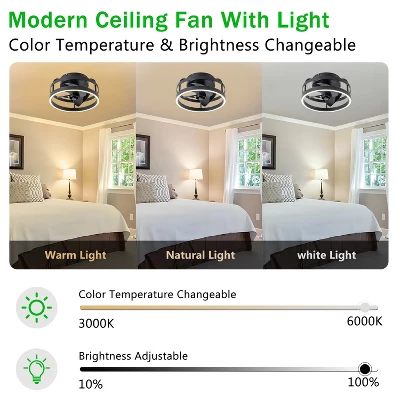 This modern LED Ceiling Fan Flush Mount combines sleek design with innovative functionality, perfect for contemporary spaces. Equipped with a powerful 26W dimmable LED light, this fan provides versatile lighting options with color temperature range 3000K to 6000K, allowing you to create the perfect ambiance. The 6-speed reversible motor offers quiet and efficient air circulation, and the fan can be easily controlled via remote or app, providing ultimate convenience. Whether you’re looking to cool down a room or adjust lighting for different activities, this fan delivers comfort, style, and energy efficiency in one.