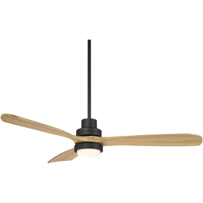 Smooth, handsome lines lend contemporary grace to this tasteful ceiling fan from Casa Vieja®. Three pine finished solid wood blades are paired with a matte black finish motor, creating a cohesive look and feel. This indoor/outdoor design is UL listed for damp locations, such as covered outdoor patios, and includes a hand held remote control that controls both the fan and integrated CCT LED light.