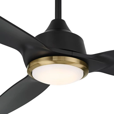 - Includes a matte black and a soft brass finish light trim ring. Use to customize the look of the fan. Matte black finish motor with soft brass finish accent. Three matte black molded ABS blades