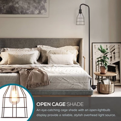 - Modern Appeal: The sleek metal base gives way to an eye-catching cage shade with an open-lightbulb display for a chic look