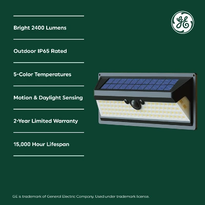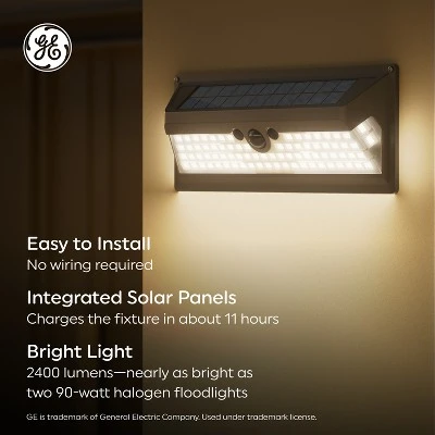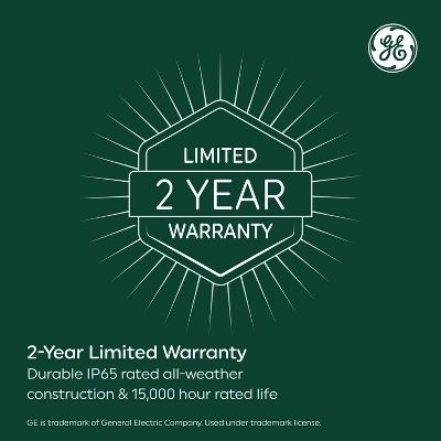 GE Outdoor Style Integrated LED Solar-Powered Security Fixtures illuminate outdoor spaces without wiring. Feature-packed and reliable, Outdoor Style fixtures brighten dark and shadowy spaces, no cords or wires required. Select the white tone to complement your home’s exterior and the settings to help enhance efficiency and security. Easy to install and set up, Outdoor Style solar-powered fixtures include security and energy-saving features like dusk-to-dawn and motion sensing to help keep your home secure. All-weather construction and integrated LEDs help ensure you come home to the lights on. Backed by a 2-year limited warranty and a brand you can trust, Outdoor Style Security Fixtures keep darkness at bay.