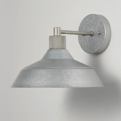 The Sutton Collection is a stunning blend of stylish elements for a modern, traditional or farmhouse feel. Connected to a round backplate by a stylishly simple connecting bar, the trendy textured socket and farmhouse shade incorporates a modern feel to emphasize a perfect balance of cozy, functional and casual living. This gorgeous wall sconce would add an exciting element to a veranda or a large, beautiful entryway just as easily as it would look amazing in a bathroom flanking the mirror. The galvanized metal finish adds warmth and dimension to your existing decor while balancing a dark-colored room or accenting a more rustic space. Plus, you can truly customize the Sutton Wall Sconce by changing the bulb. A vintage Edison bulb helps complete the modern farmhouse feel while a designer bulb can help showcase your unique style. The choice is yours.