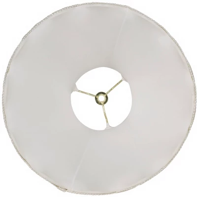 The traditional bell shade gets an update with a gentle scallop design at the top and bottom. Premium creme polyester outer fabric with matching braid trim and an inner poly/nylon blend lining. High quality hardware includes a polished bronze spider fitting with 1/2″ drop. From the Springcrest Collection.