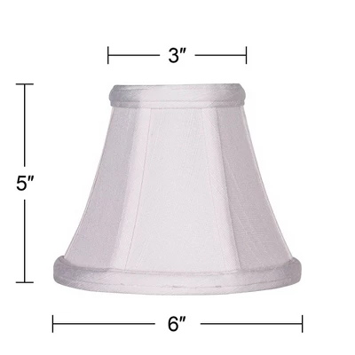 - Set of 8 chandelier clip-on shades. Each is 3″ across the top x 6″ across the bottom x 5″ on the slant x 5″ high.