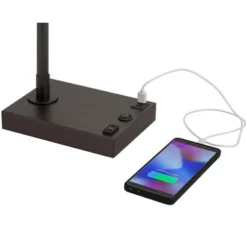 19.5″ Bedside Power Outlet Base Metal Table Desk Lamp In White Fabric Shade – Creekwood Home