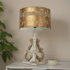 Rustic Vintage Table Lamp With Distressed Finish, 24.80″ Tall, Gold And White Home Decor Light, 1pc