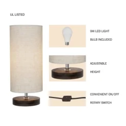 Storied Home 14″ Round Stoneware Desk Lamp: Ceramic Office Light, ETL & UL Listed, Linen Shade