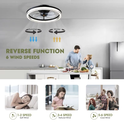 - [Quiet & Reversible motor]This led ceiling fan has 100% quality copper motor, with balanced blade components to ensure smooth operation without noise. In summer mode, it releases a lot of cool air to make people feel cool and comfortable. In winter mode, it reverses the wind direction to make the indoor air more circulating and fresh and keep you warm.