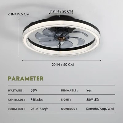 Experience modern design with this low profile ceiling fan featuring a quality LED light source and double-layer lampshade for uniform, soft light. Enjoy dimmable lighting with memory mode for easy customization of color temperatures and brightness levels. Stay comfortable with a quiet, reversible motor that offers cooling airflow in summer and circulation in winter. Control the fan’s 6 speeds and sleep timer for personalized comfort and convenience using the remote or app.