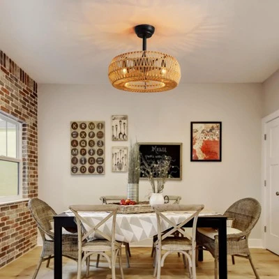 - STYLISH HANDCRAFTED DESIGN: Crafted from natural abaca twine, this ceiling fan features a stunning rattan lampshade that evenly spreads light, creating a warm atmosphere. Ideal for farmhouse, vintage, and bohemian decor.