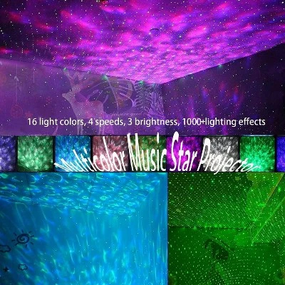 Equipped with Bluetooth 5.0 speaker, our LED galaxy projector for bedroom has a cool feature that you can have stars and transforming RGBW nebula spark rhythmically to the beat of the music, creating a fun and energetic party atmosphere. By simply connecting Bluetooth or inserting a USB drive, you can combine our galaxy star projector with your favorite tunes, brings you an unprecedented listening experience.A really cool and amazing gift for kids & adults. Enjoy romantic starry night lighting and let the starry light accent your home.Package Include:1 x starry night light projector;1 x RF remote control (battery not included);1 x USB cable1 x User Manual.