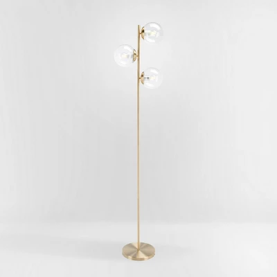 Introducing Niobe, the elegantly designed 3 light floor lamp that stands tall at 65 inches. Crafted from sleek metal and finished in a sophisticated gold hue, this lamp brings a touch of modern refinement to any space. Each light casts a warm, inviting glow, enhancing the ambiance of your living room, study, or bedroom. The gold finish complements a variety of decor styles, adding a timeless piece to your home. With its sturdy construction and stylish aesthetic, Niobe becomes a striking focal point in your interior design. Assembly is a breeze, allowing you to enjoy its beauty without hassle. Transform your space with the Niobe floor lamp, where modern elegance meets practical design in a seamless blend.