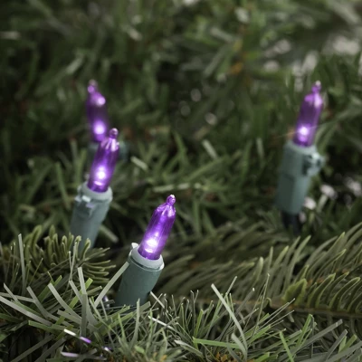 Perfect for adding a touch of magic to your home during the holiday season, these lights feature bright and energy-efficient purple LED bulbs that will create a warm and inviting atmosphere in any room. They’re ideal for decorating your holiday tree, wrapping around banisters and railings, adorning your mantelpiece or to add a spooky touch to your Halloween decorations.Product Features:Color: purple bulbs / green wireNumber of bulbs on string: 100Bulb size: LED miniSpacing between each bulb: 4″Lighted length: 33’Total length: 34.25’12” lead cord3″ tail cordAdditional Product Features:LED lights use 90% less energyDurable non-glass replaceable bulbsUL certified and approved for indoor or outdoor useIf one bulb burns out, the rest will stay litLights are equipped with a lamp lock feature, which makes them replaceable, interchangeable and keeps them from falling outComes with replacement bulbs and spare fusesContains end-to-end connectors which allow you to connect multiple sets together (not to exceed 210 watts)Wire gauge: 22120 volts, 60 hertz, 0.06 amps, 7.2 watts