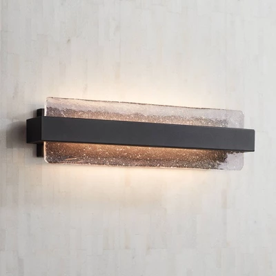 Show thoughtful and stylish consideration for your home decor with this instant classic bathroom vanity light from Possini Euro Design. The gentle black finish over the design of the light complements the beautiful Piastra glass that serves as this fixture’s highlight. Add to that the energy-efficiency of the integrated 20 watt LED, and you have a fantastic addition to make your living space truly shine.
