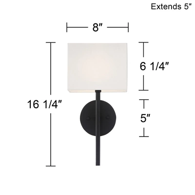 By Possini Euro Design®, this set of two contemporary black wall sconces is a sophisticated choice for a living area or hallway. It shows off a classic troch profile updated for modern living with clean lines and a rectangular shade complementing a round wall plate. A sleek black finish adds dramatic flair while a linen shade ensures soft, appealing illumination.