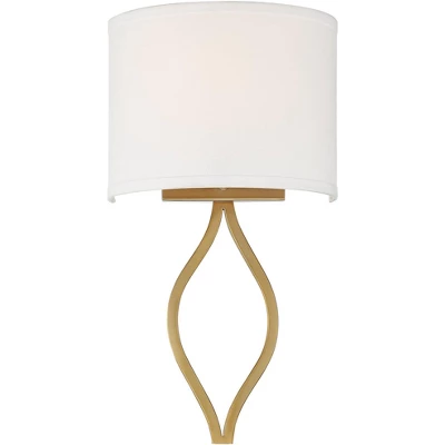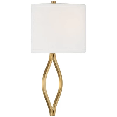 A visually appealing silhouette pads the modern creds of this contemporary single-light wall sconce. Simple and yet elegant, this sconce refines a classic living space with sophisticated vibes. A warm antiqued brass finish coats its open, decorative base, as a half-moon shaped linen shade adds a perfect complement. For vertical installation only.