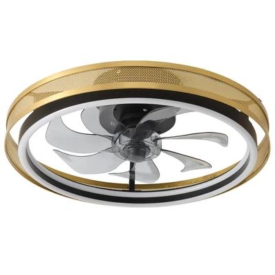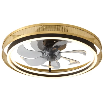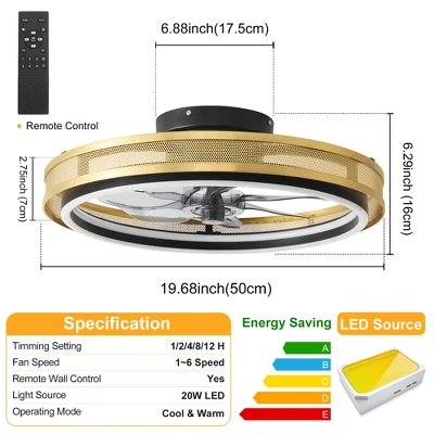 This versatile ceiling fan combines a sturdy metal ceiling tray with ABS blades and a protective metal fence, creating a perfect blend of industrial and retro styles. The energy-efficient 20W LED light source offers both cool and warm lighting modes, with dimming and color temperature adjustment capabilities. Operated by remote or wall control, it features 6 adjustable speeds and a programmable timer (1/2/3 /8/12 hours) for customized comfort. The silent motor design ensures year-round use – circulating warm air in winter and cooling breezes in summer.