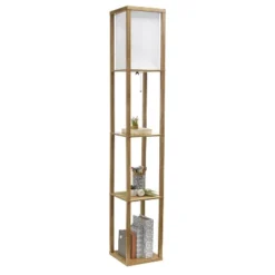 62.5″ Modern 3-Tier Standing Floor Lamp With Linen Shade & Storage – Simple Designs