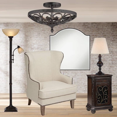 Decorate a sitting or reading space stylishly with this torchiere floor lamp from the Regency Hill brand. It comes in an oil-rubbed bronze finish that is paired with amber glass shades for a classic traditional look. A flexible reader arm on the side allows for additional lighting.