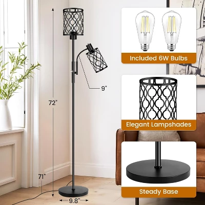- Includes: 1 Floor Lamp With Shades, 3 LED Bulbs