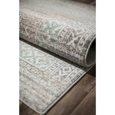 Shades of pink and grey beautifully complement each other in this striking rug. Utilizing a traditional geometric pattern, the motif feels both familiar and exceptional—providing the perfect combination for an accent piece. The pile is medium-length and constructed to have durability, a soft touch, and a shiny quality. It’s also been power-loomed and crafted from polypropylene.