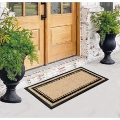 A1HC Natural Coir And Rubber Welcome Black Border Large Door Mat 18″ X 48″, Front Door Entry Doormat