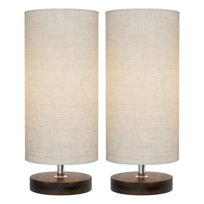 - The 2-pack side table lamp set features a base with a woodgrain-look that is beautifully complemented by the textured linen-look cylinder drum shade