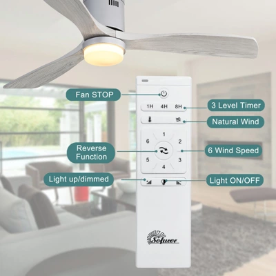 - Sofucor Ceiling Fan with Dimmable LED light color temperatures(3000K/4500K/6000K)