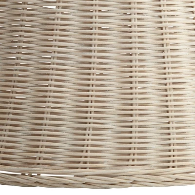 Cool white rattan is a perfect choice for a coastal tropical empire lamp shade. A great choice for a casual space, it offers rich dimensionality with a warm, natural look and feel. A beige finish threaded spider fitter secures the shade and a harp and finial are included.