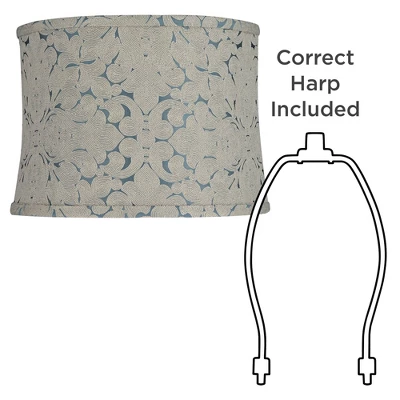 Enhance your living space with the eye-catching patterns of this softback drum lamp shade. In blue with a floral design, the shade is a perfect choice in a living area or den, adding flair without overwhelming. It’s complete with white fabric lining for lovely illumination and single fold self trim adds a tailored touch.
