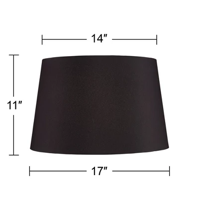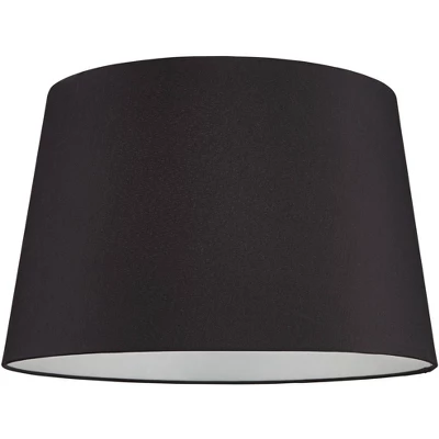 Create cool vibes in a contemporary space by sprucing up a table or floor lamp with this black faux silk hardback tapered drum lamp shade. This lamp shade is covered in black poly and cotton fabric with a white unlined interior and rolled trim. A polished brass finish fitter embellishes the romantic look of this modern shade. Included are a harp and finial in the correct customized size.