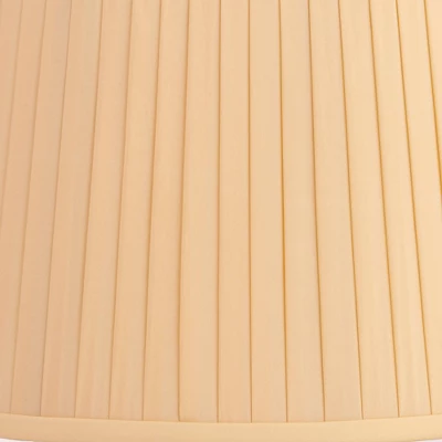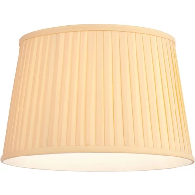 Stylish pleating lends classic flair to this traditional tapered drum lamp shade. From Springcrest Collection™, it boasts a soft yellow faux silk cover, offering versatility and beautiful, bright illumination to your home. The shade is complete with a white polyester lining and includes a polished brass finish fitter.