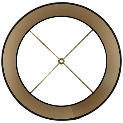 - Navy blue fabric shade. Gold trim top and bottom with gold interior. Nylon/poly blend fabric material.