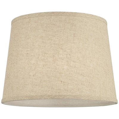 - Set of two hardback drum lamp shades from the Springcrest brand. Linen and cotton fabric. Burlap color tone.