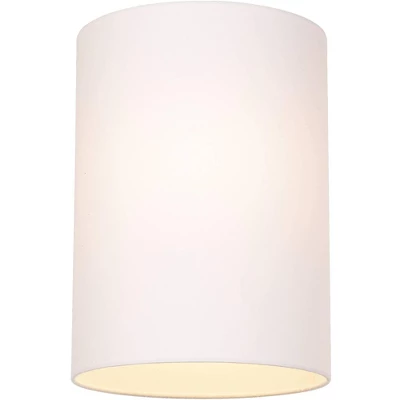 This set of two small drum shade features a deep cylinder shape. White cotton material adds a rolled edge for a hint of dimension. Spider fittings come in a white finish to match. The correct size harp is included free with each shade.