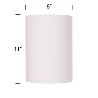 - Set of 2 tall drum lamp shades. Each shade is 8″ across the top and bottom x 11″ high.