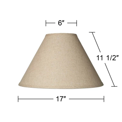 - Set of 2 lamp shades. Each is 6″ across the top x 17″ across the bottom x 11 1/2″ on the slant.
