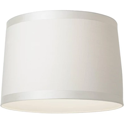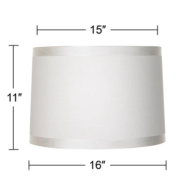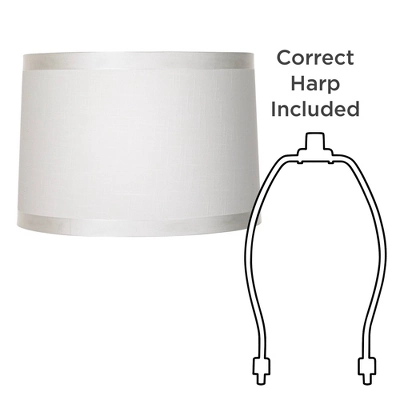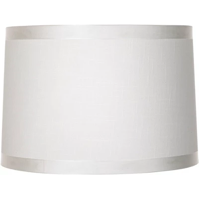 These crisp drum lamp shades are versatile and perfect for any lamp. They come in off-white fabric with grosgrain ribbon trim on the top and bottom, with chrome finish spider fitters inside. The correct size harps and finials are included free with these shades. From the Springcrest Collection brand.