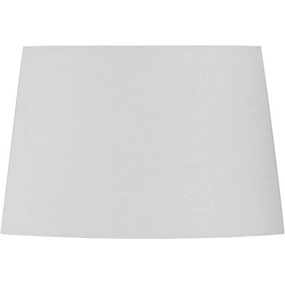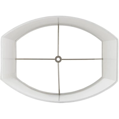 Crisp and clean, this set of two hardback oval lamp shades adds simple structure to modern and classic motifs. This clean-lined design features white linen fabric with unlined interiors. Rolled trim smooths out the edges while chrome spider fitters radiate. Correctly sized harps and finials are included.